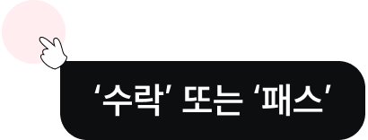 이상형 설정에 맞게 맞춤 프로필을 제안해드립니다. 프로필은 '수락' 또는 '패스'로 만남을 결정합니다.